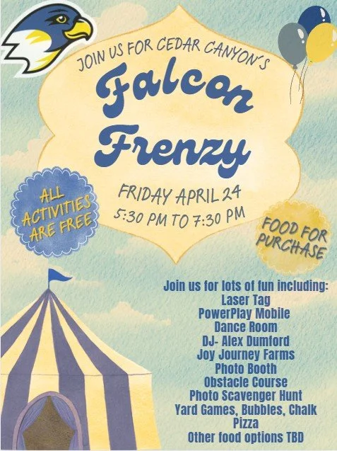 Falcon Frenzy The Falcon Frenzy will be held April 24, 2026 as an end of the year celebration.Be on the look out for more details!